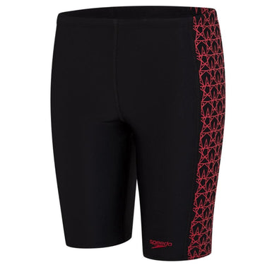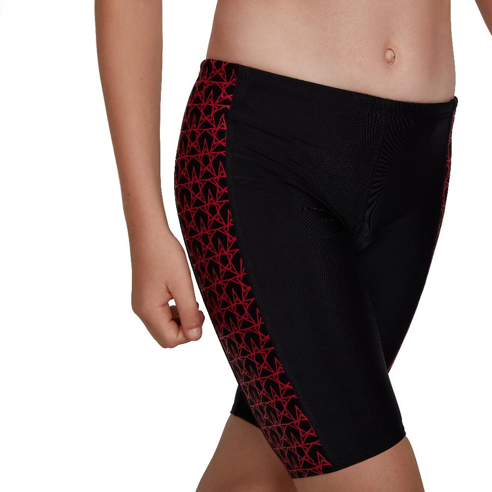 A Celebration of our iconic branding this jammer in classic black features side panels printed with our new Boomstar print in bright red adding a flash of confidence to your young swimmer's look.