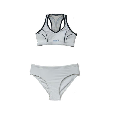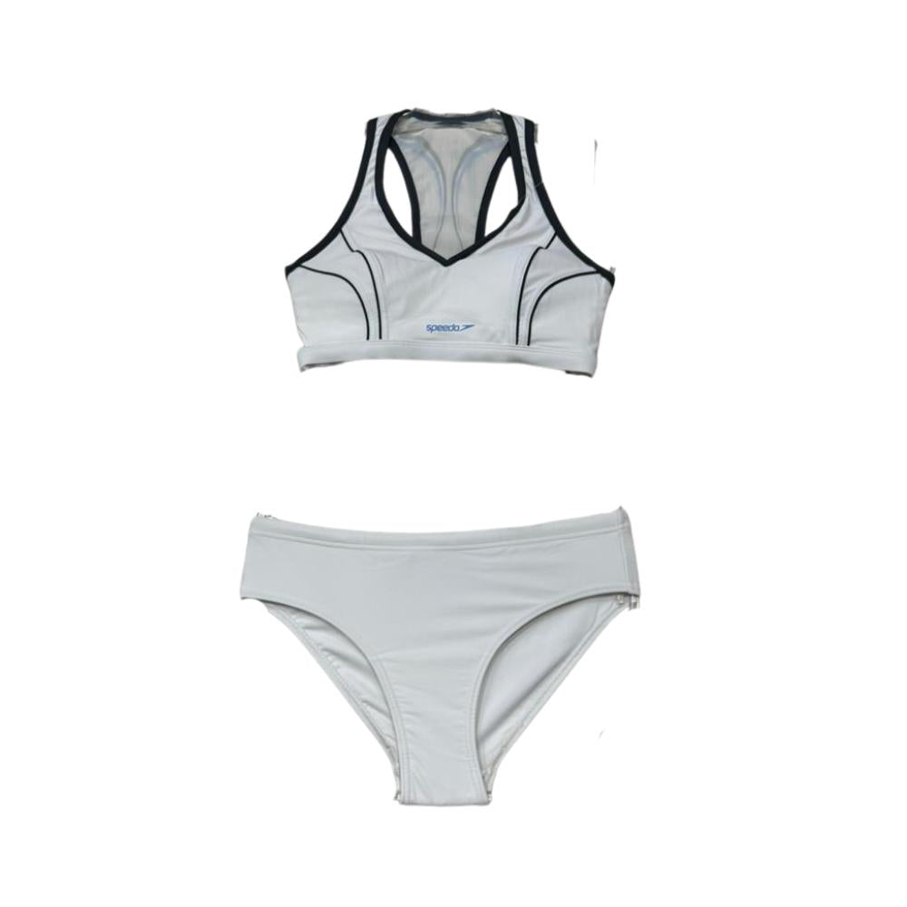 This 2pc set features a simple yet sporty look with our fully white bikini set, silhouetted on a heart-shape neckline with contour side panels and matching white bottoms offering a flattering and trendy fit.