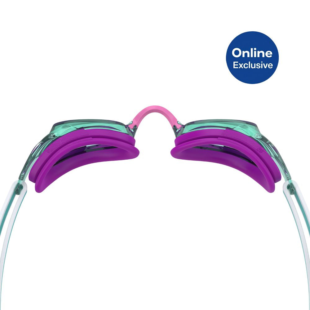 Introducing a new, evolved Junior Vanquisher 3.0 Goggle. Next-level optics deliver a clearer path to the podium and a 14% increase in field of view vs Vanquisher 2.0. Stronger, flatter and wider straps hold their position so you can focus on holding yours. With the same snug, race-day fit and comfortable gasket you love, it now includes slide and- lock nose bridges for easy adjustment. Unique design for the junior swimmer. World Aquatics approved.