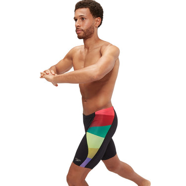 Rise to the challenge in training wearing this black printed Jammer, featuring a dual-leg colour-block print in muted shades. Designed to create a streamlined profile in the water, the jammer includes an adjustable drawstring waist and a v-cut panel with integral support for added comfort and security. Made from our durable Endurance+ fabric, which is quick-drying and 100% chlorine resistant. One of the yarns in this fabric is made from 100% post-consumer waste, such as recycled plastic bottles.