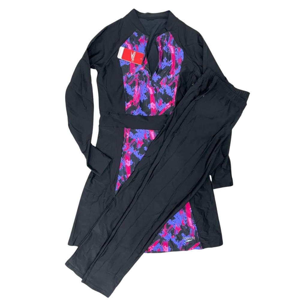 SPEEDO ASIA FIT WOMENS SLIM FIT BANDED WAIST LS TOP AND PANT 2 PIECES SET (*swimhood not included)
