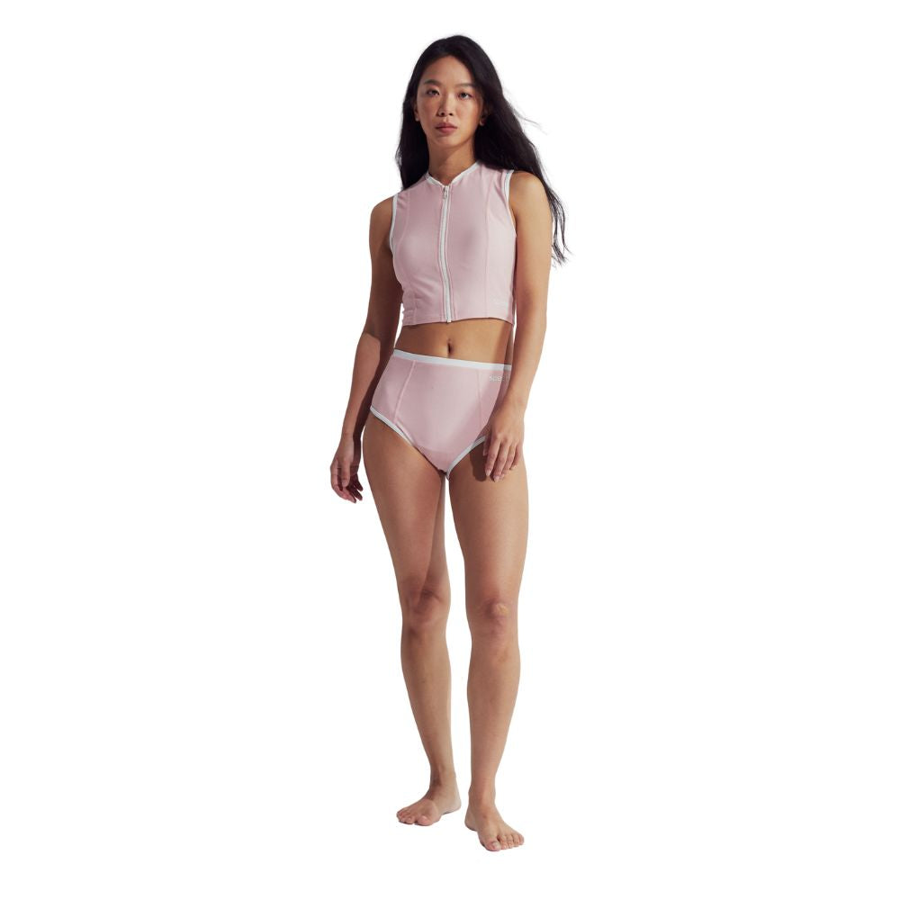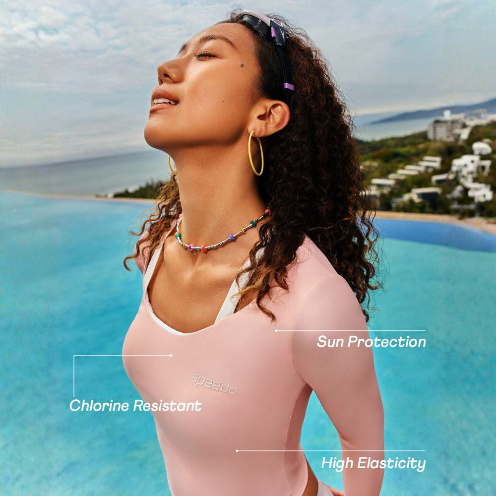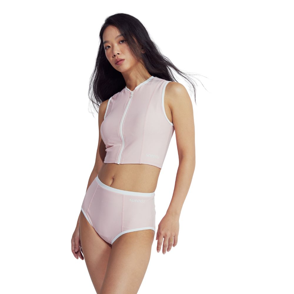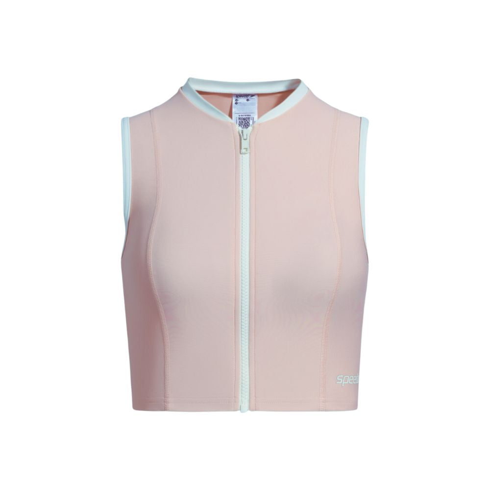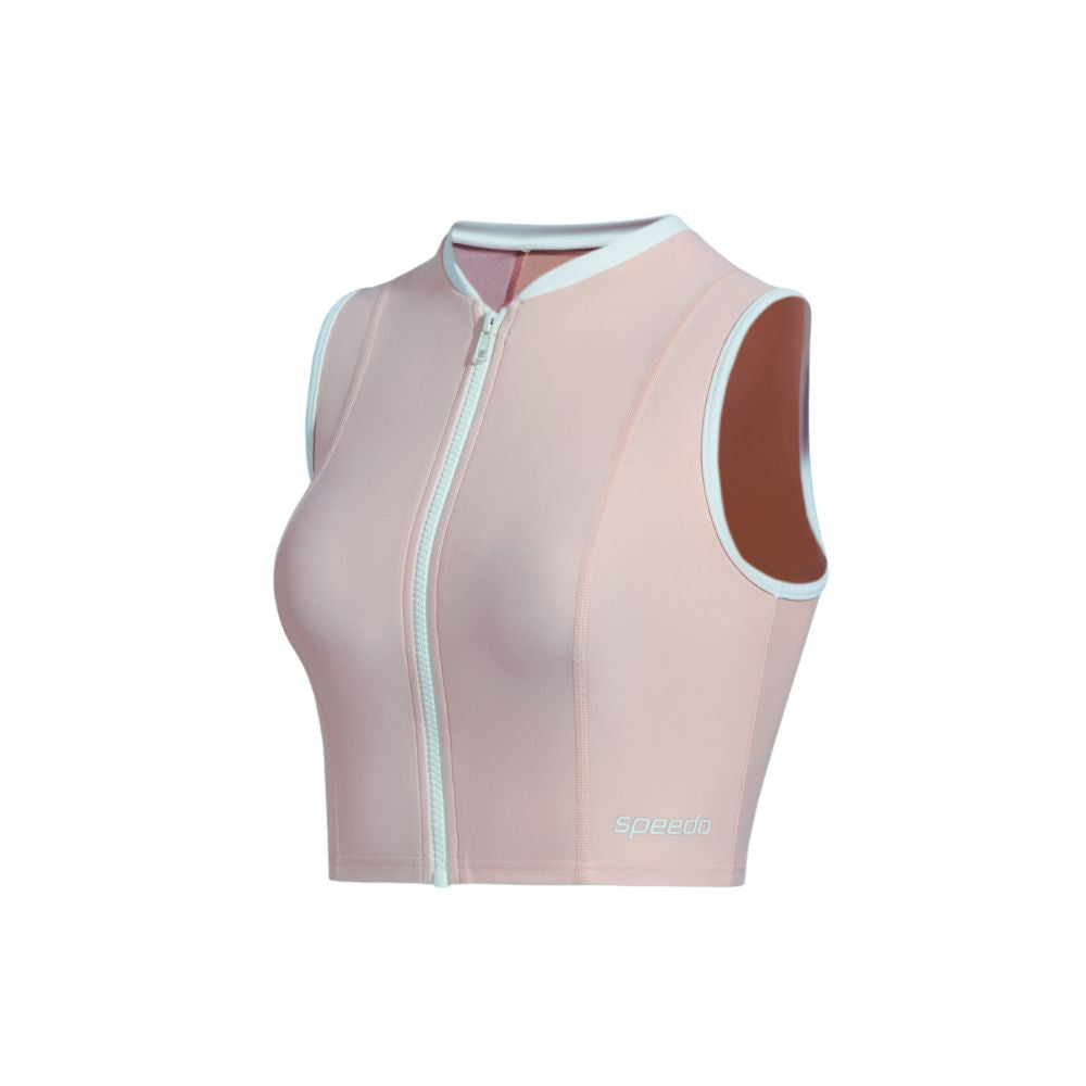 The Women’s Speedo Sun Protection Swim Top features a sleeveless crop design with a convenient front zipper, offering a lightweight and maximally comfortable feel. With excellent stretch, high chlorine resistance, and ultra-lightweight fabric, it’s ideal for swimming freely and enjoying an energetic summer.